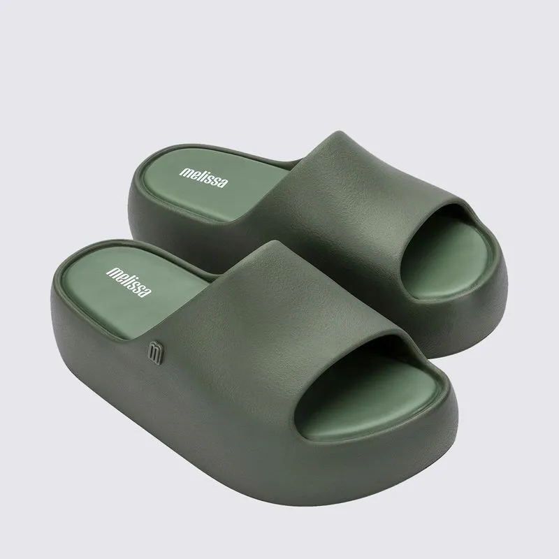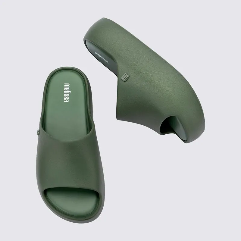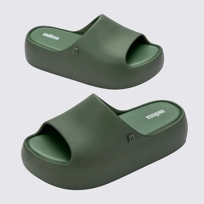 A Melissa Free é uma família de produtos que estão ao passo dos novos tempos. Fabricados a partir de EVA, os calçados e acessórios são mais leves e sustentáveis. A novidade é a Melissa Free Platform Slide, um tamanco estilo slide cheio de informações de moda. O modelo tem aparência robusta, mas é superleve e confortável para todos os momentos do dia. Destaque que chegou em 3 opções de cores: os clássicos preto e rosa, junto do bege acompanhando a moda.